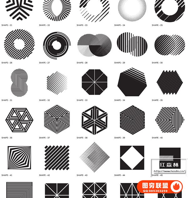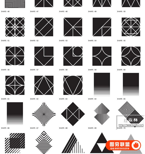 [矢量素材]100款时尚科技感几何抽象形状无缝拼接图案矢量素材 100 Geometric Shapes