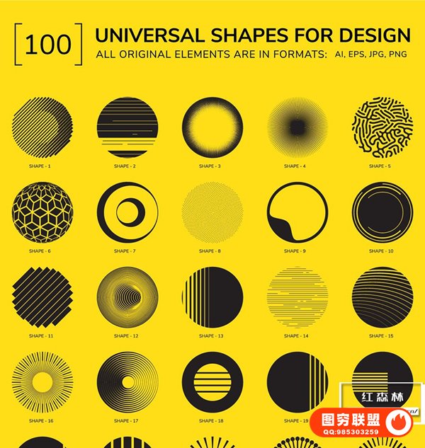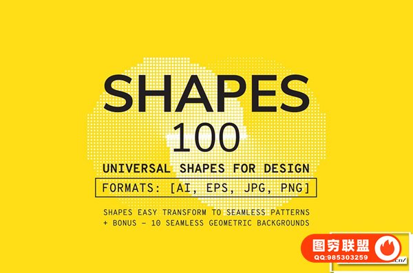 100 种形状(EPS10、JPG、透明 PNG – 5000×5000 像素、300 dpi)、RGB