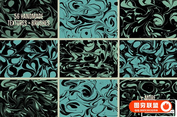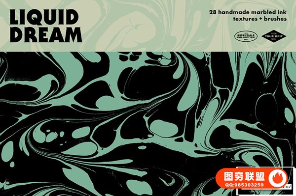 图穷联 » [图片素材]28种复古艺术沙砾大理石抽象扭曲液体花纹纹理创意设计笔刷素材 Liqui