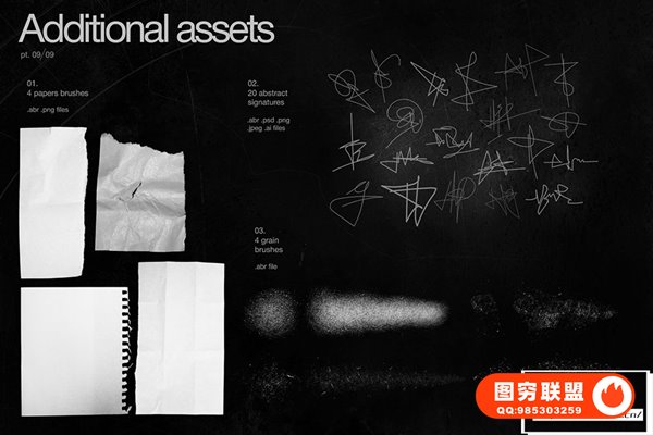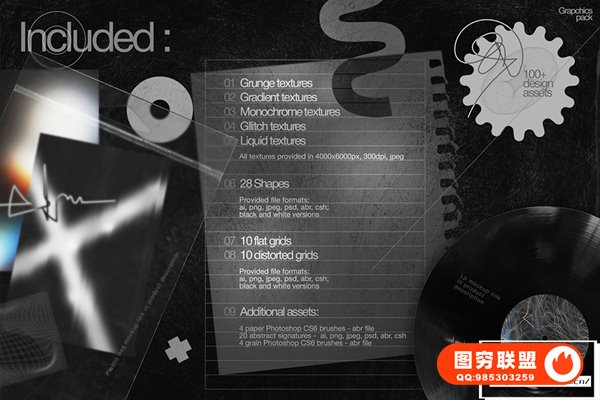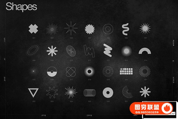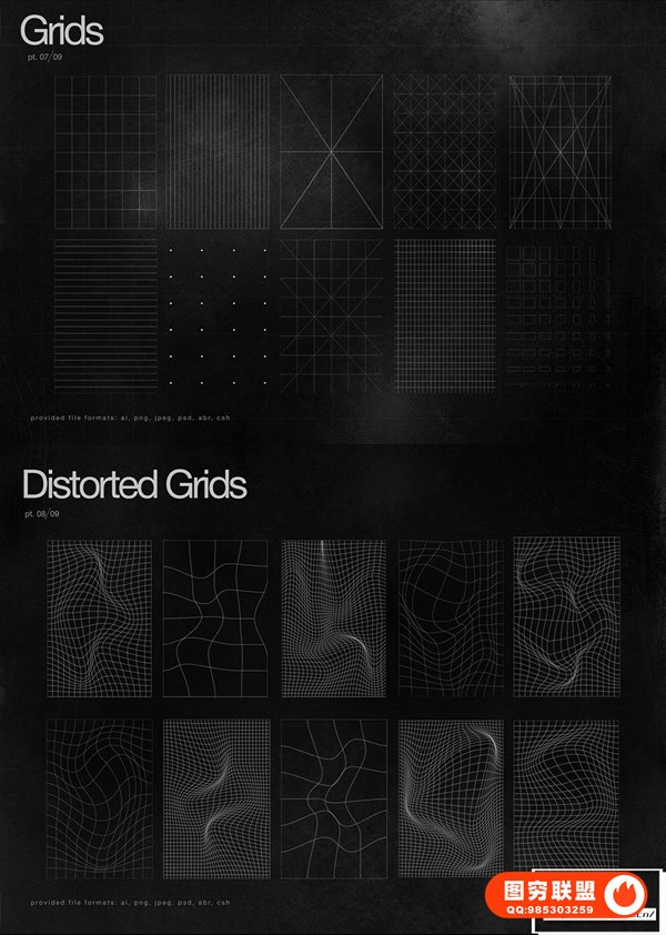 提供的文件格式:ai(CS5-CC)、png、jpeg、psd(CS6-CC)、abr、csh;黑色和白色版本