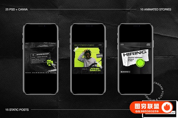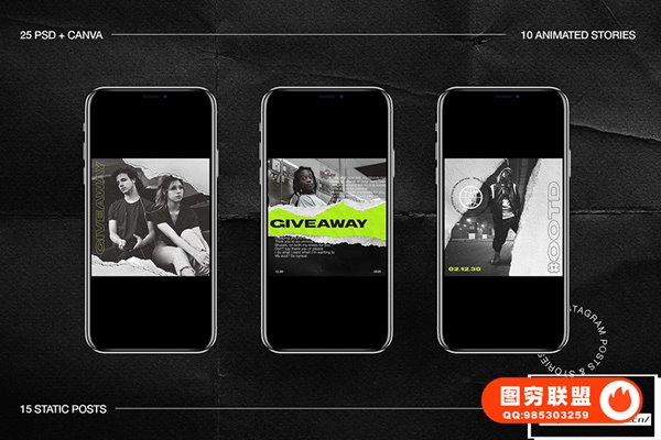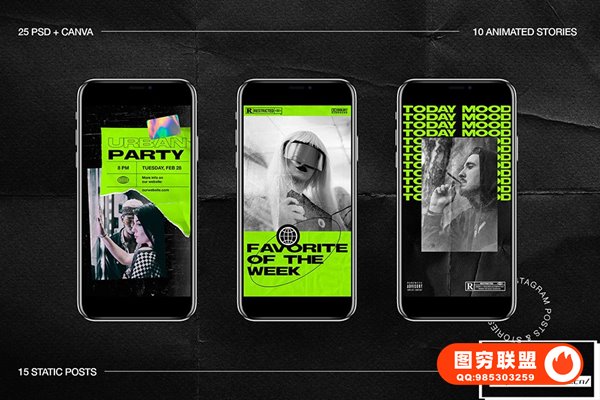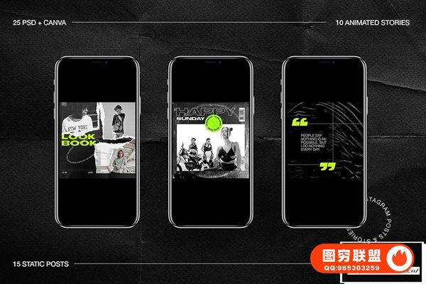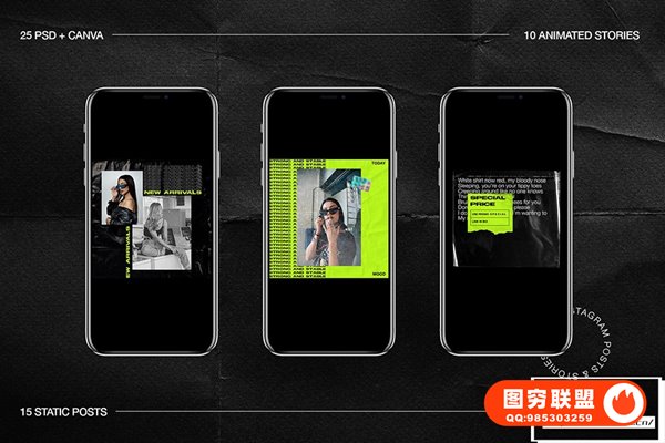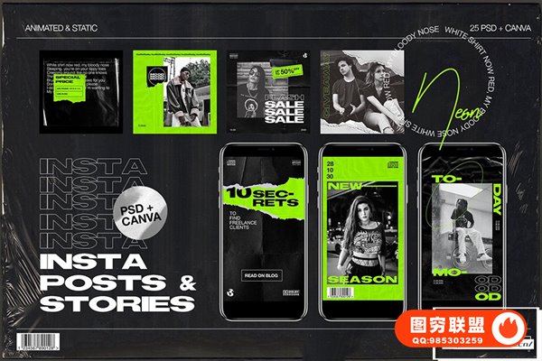[PSD模板]25套潮流艺术Ins新媒体微信微博海报版式设计PS模板 Neon Instagram PSD + Canva
