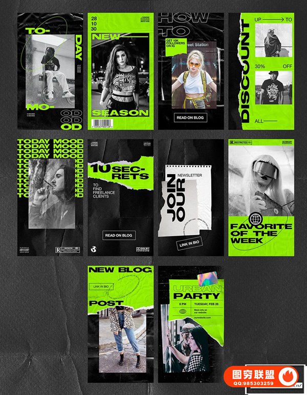 图穷联 » [PSD模板]25套潮流艺术Ins新媒体微信微博海报版式设计PS模板 Neon In