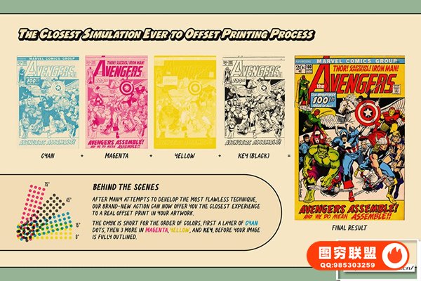 [PS动作]复古颗粒半色调波点四色CMYK印刷打印效果图像处理特效PS动作 Offset Printing Simulator Photoshop Action