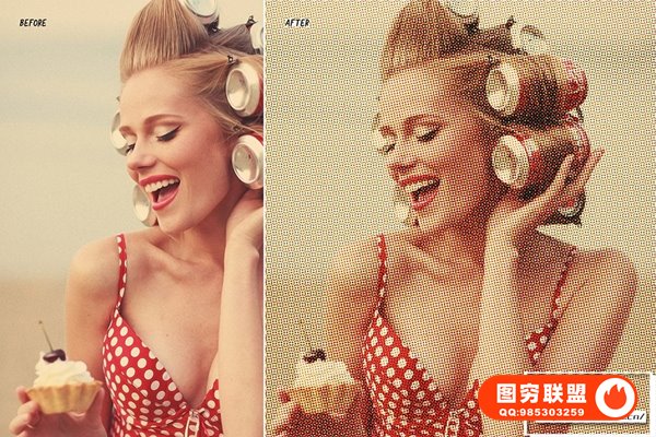 图穷联 » [PS动作]复古颗粒半色调波点四色CMYK印刷打印效果图像处理特效PS动作 Offs