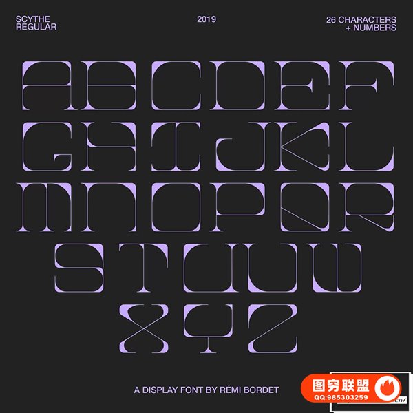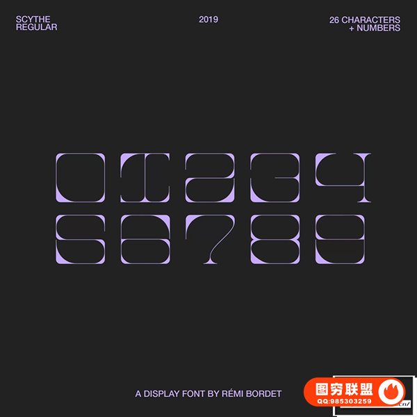 Scythe 是一种实验性的方形衬线字体,灵感来自镰刀形状。包含 26 个字符和10个数字。