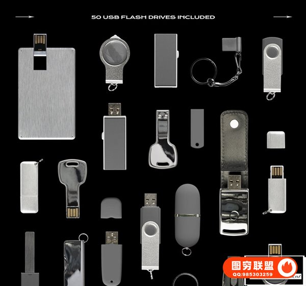 图穷联 » [PS样机]50款盘闪存驱动器读卡器创意礼品办公设计PS贴图样机 USB Flash