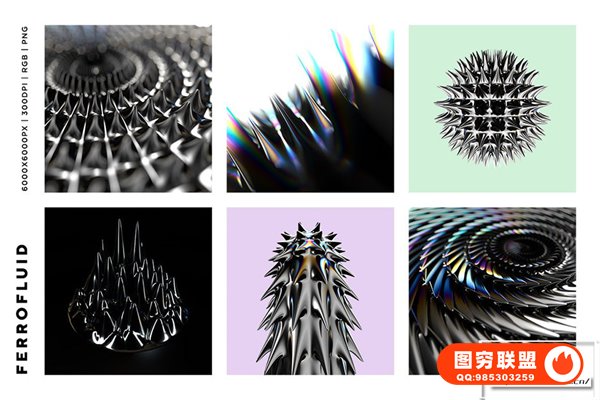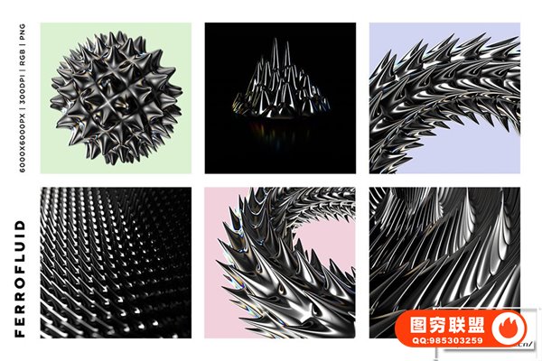 图穷联 » [图片素材]24张抽象未来科幻3D金属磁流体尖齿异形酸性设计图片素材 Ferrofl