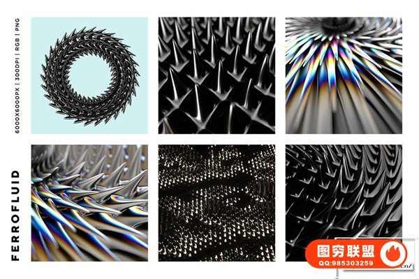 [图片素材]24张抽象未来科幻3D金属磁流体尖齿异形酸性设计图片素材 Ferrofluid Abstract Textures