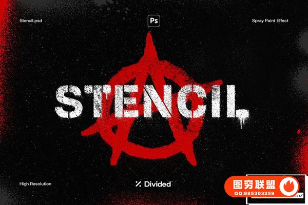 图穷联 » [PSD模板]文本Logo图形模拟喷漆喷涂纹理效果PSD模板 Divided -St