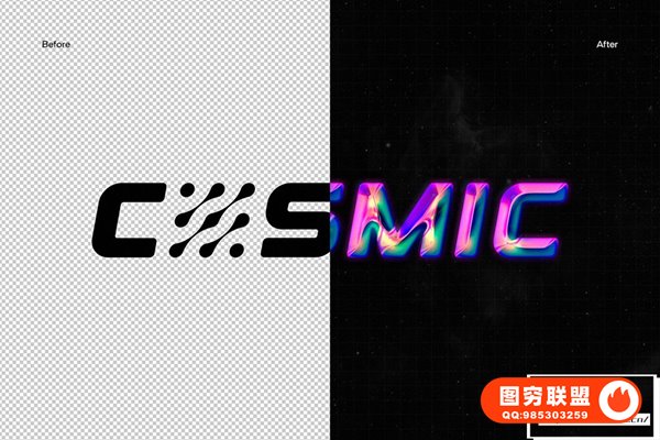 Alter以这种充满未来感的彩虹色镀铬效果进入宇宙。只需将您的徽标或排版放入智能对象中,让我们预定义的自定义效果完成剩下的工作。