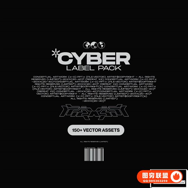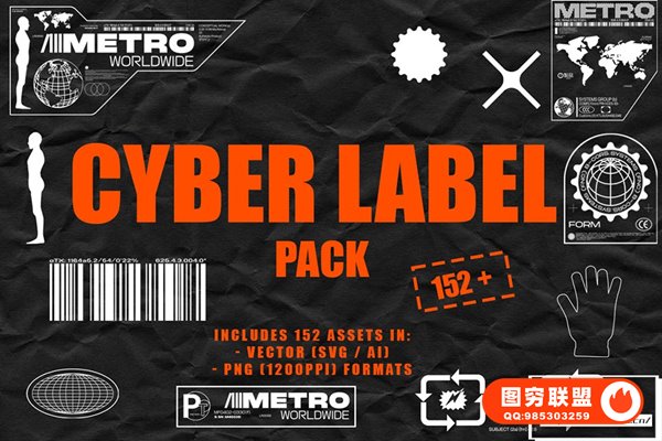 [矢量素材]152个未来科幻赛博朋克标签贴纸几何标注酸性设计矢量图形素材 Hvnter – Cyber Label Pack