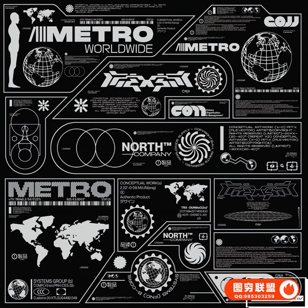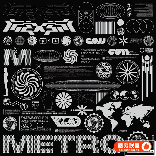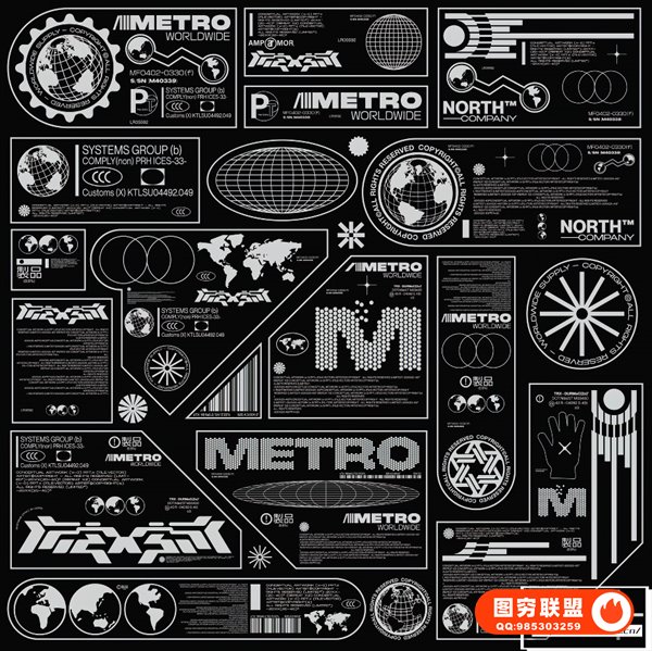 图穷联 » [矢量素材]152个未来科幻赛博朋克标签贴纸几何标注酸性设计矢量图形素材 Hvnte