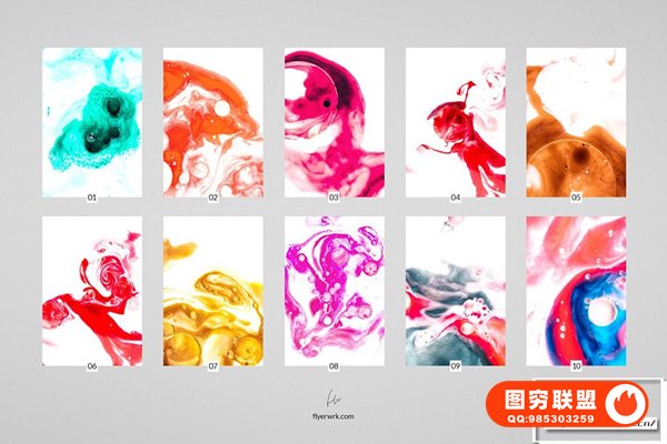 图穷联 » [图片素材]50款抽象艺术背景牛奶水墨液体颜料水彩纹理创意图片素材 Flyerwrk