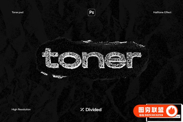 Toner 是一种Photoshop 效果,非常适合半色调文本失真。只需将您的徽标或排版放入智能对象中,让我们预定义的自定义效果完成剩下的工作。