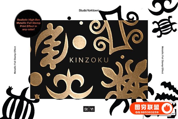 [PSD模板]金属箔冲压烫金光泽压印浮雕效果印刷工艺Logo文本样式PSD模板 Kinzoku – Metallic Foil Stamp Effect