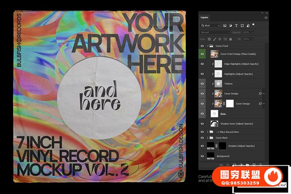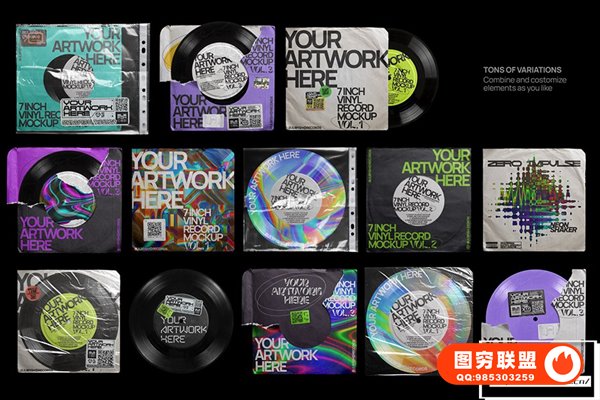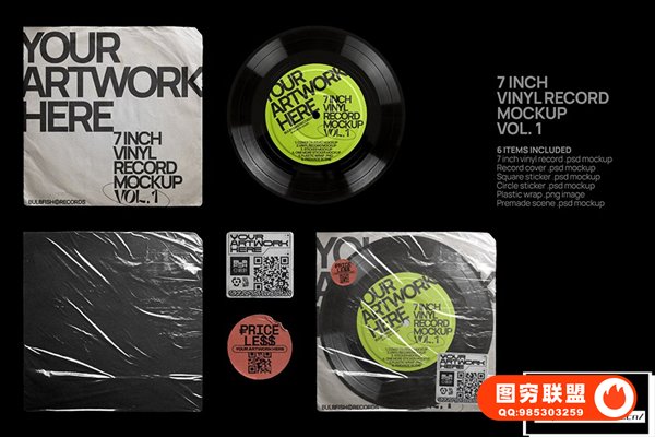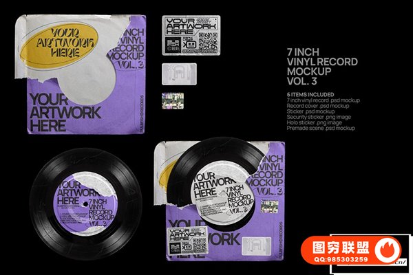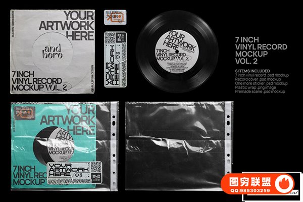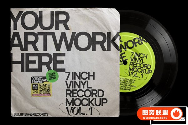 图穷联 » [PS样机]3套复古黑胶音乐唱片电音CD专辑包装设计展示PS贴图样机 7 Inch