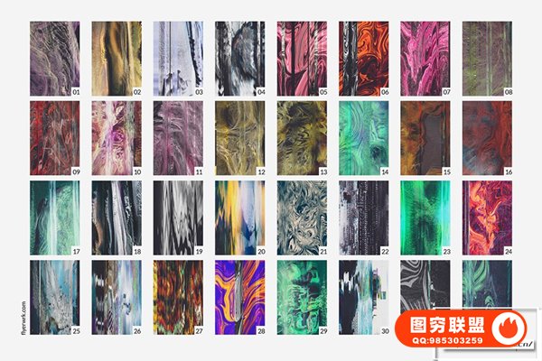 图穷联 » [图片素材]32款抽象艺术故障失真毛刺纹理扭曲背景纹理图片素材 Flyerwrk -