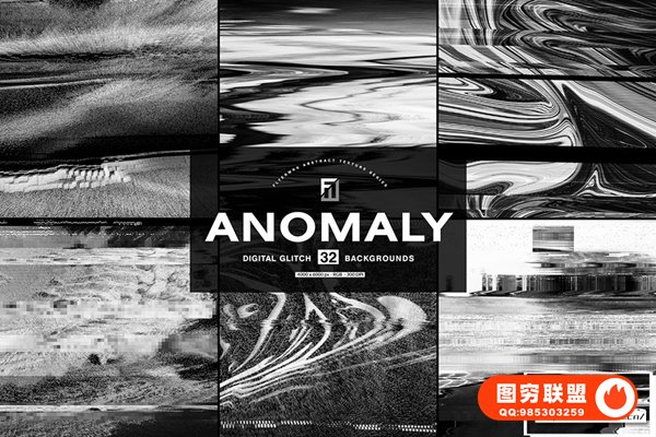 [图片素材]32款抽象艺术故障失真毛刺纹理扭曲背景纹理图片素材 Flyerwrk – Anomaly:Abstract textures