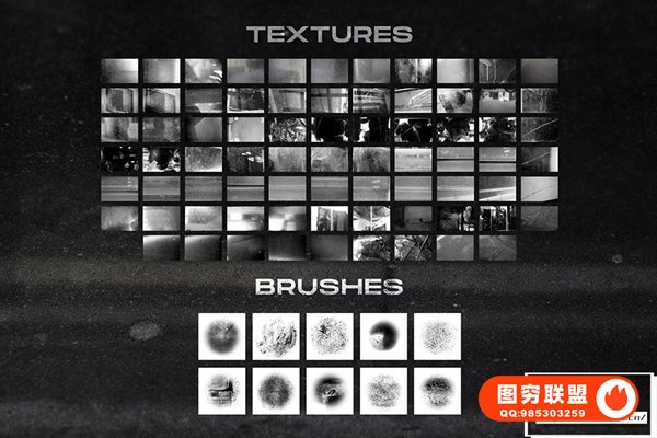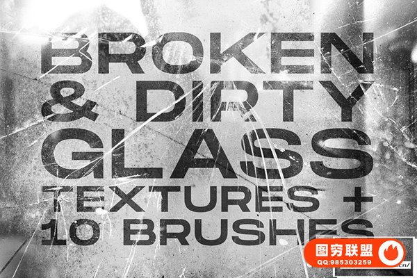 图穷联 » [PS笔刷]75款复古黑白做旧磨损破裂玻璃PS笔刷肮脏纹理创意设计图片素材 Brok