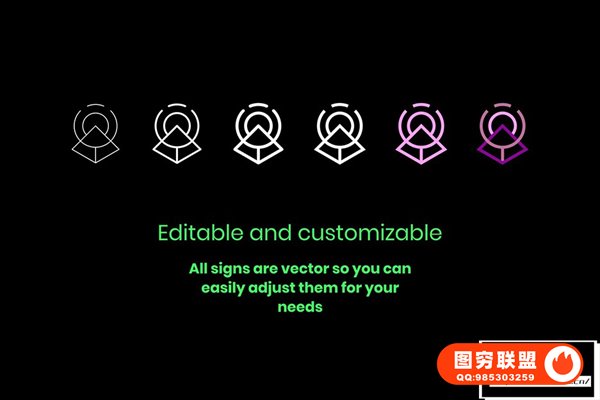 可定制/所有标志均为矢量,因此您可以通过 Illustrator 轻松调整它们以满足您的需求