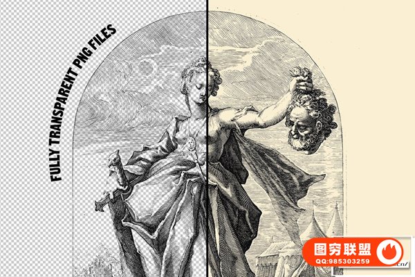 图穷联 » [PNG素材]60张17世纪复古中世纪希腊神话素描绘画场景人物PNG图片素材 The