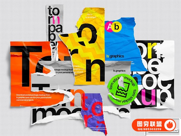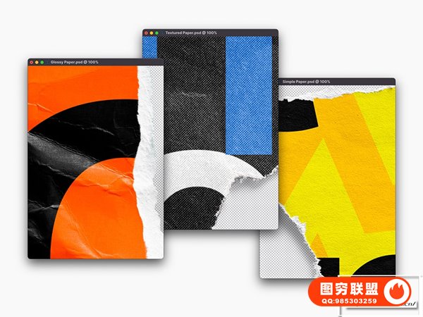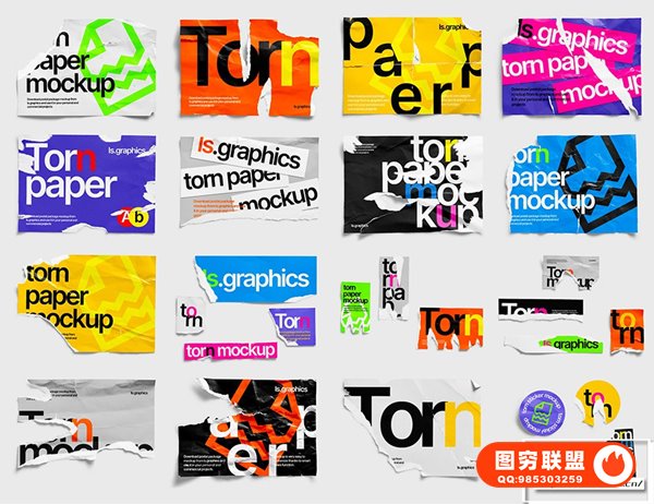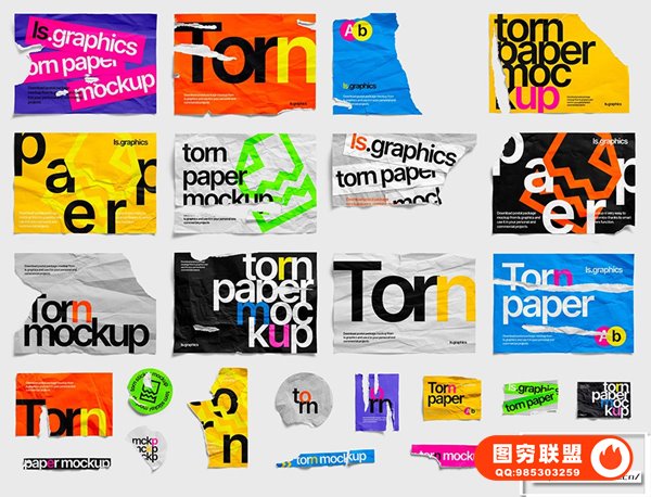 图穷联 » [PS样机]80款撕裂纸张破损毛边褶皱做旧效果PS样机设计素材 Torn Paper