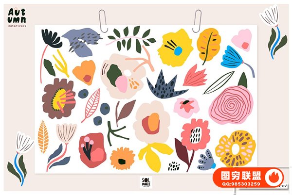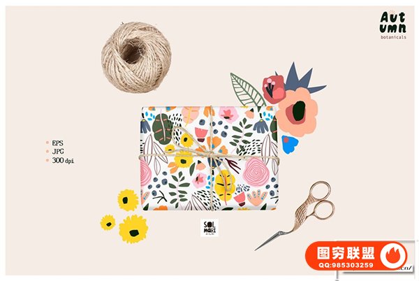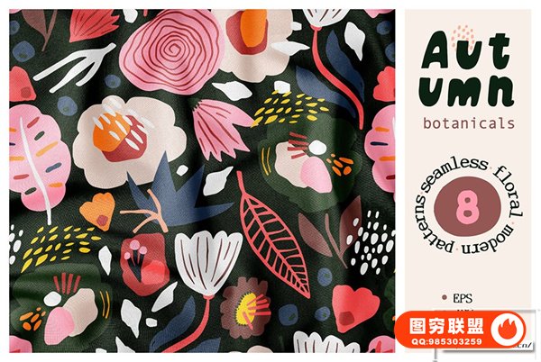 图穷联 » [矢量素材]时尚优雅秋季植物树叶花卉无缝图案插画设计矢量素材 Autumn Bota