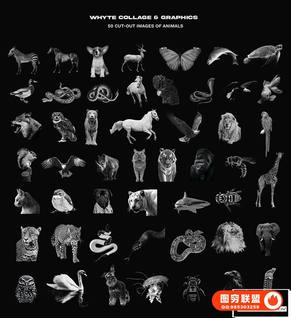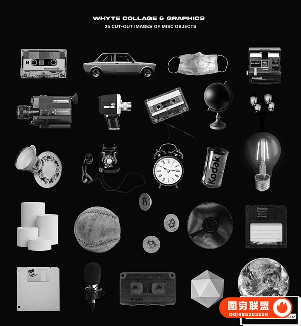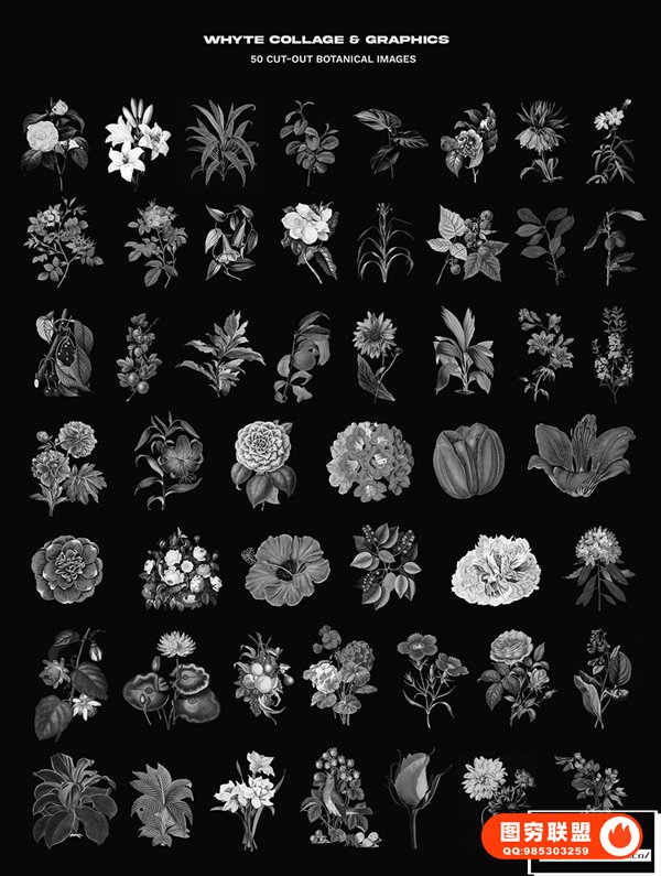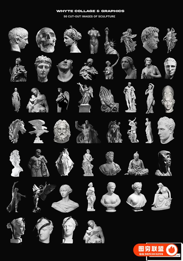 [PNG素材]270款黑白复古艺术雕塑动植物摆件标签贴纸装饰元素拼贴画PNG剪贴素材 WHYTE Collage and Graphics