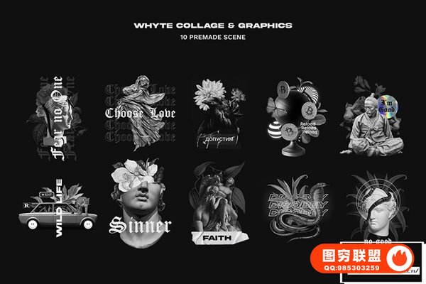 “WHYTE Collage and Graphics”是270 多种独特且用途广泛的图形元素的集合,可提升任何设计项目。包装内包含雕塑、动物、植物、纹理、贴纸等多种剪纸元素。这些元素非常适合各种设计项目,例如印刷材料、社交媒体内容和服装品牌。图形是高分辨率的,可以轻松编辑和定制以满足您的特定需求。