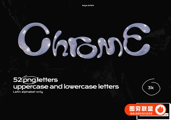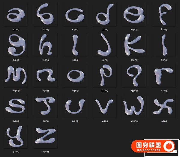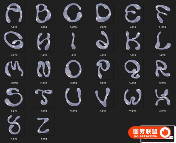 图穷联 » [PNG素材]52款酸性艺术镀铬抽象渐变纹理大小写3D英文字母创意PNG素材 Chr