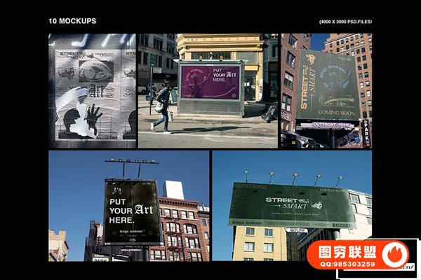图穷联 » [PS样机]10套欧美街头建筑外墙广告灯箱户外巨幅海报宣传展示PS智能样机 Stre