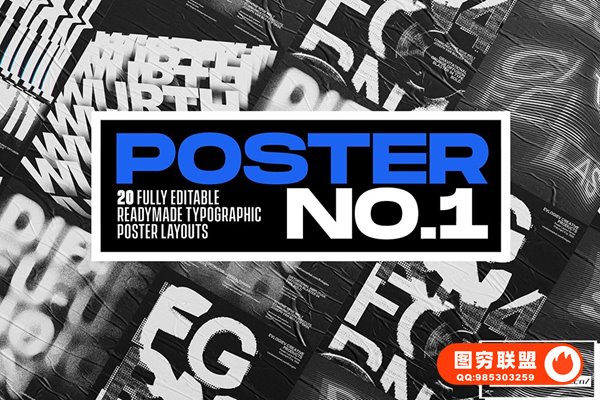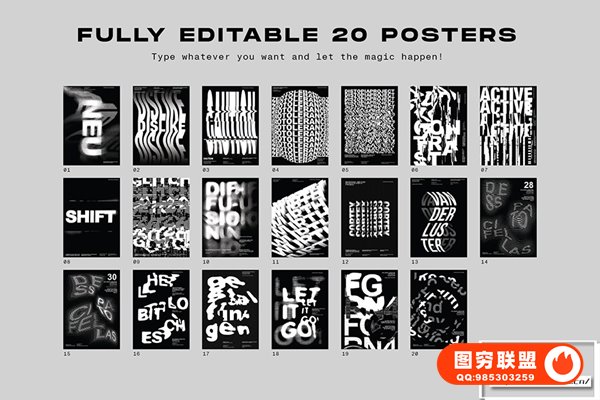 [PSD模板]20款抽象扭曲大文本海报标题噪点故障字体特效创意设计PS样机模板 Typographic Poster Layouts No.01