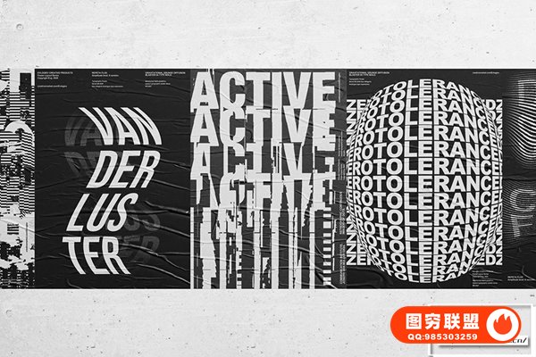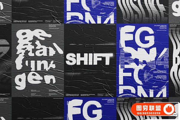 图穷联 » [PSD模板]20款抽象扭曲大文本海报标题噪点故障字体特效创意设计PS样机模板 Ty