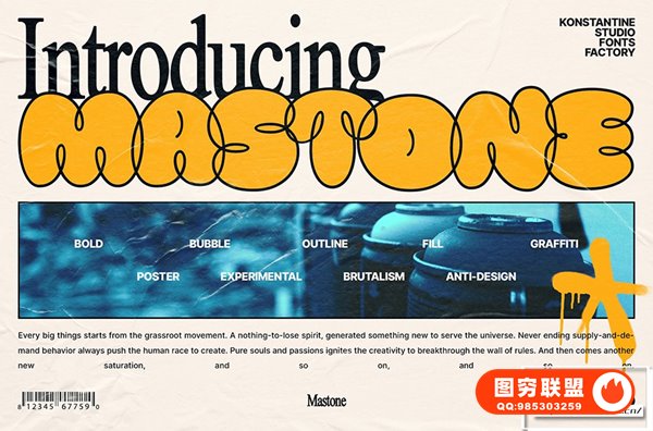 Mastone 的灵感来自于当今平面设计行业的气泡排版趋势。y2k 文化、街头视觉和野蛮主义的全新组合,以及吐泡泡涂鸦风格的实验性触感。