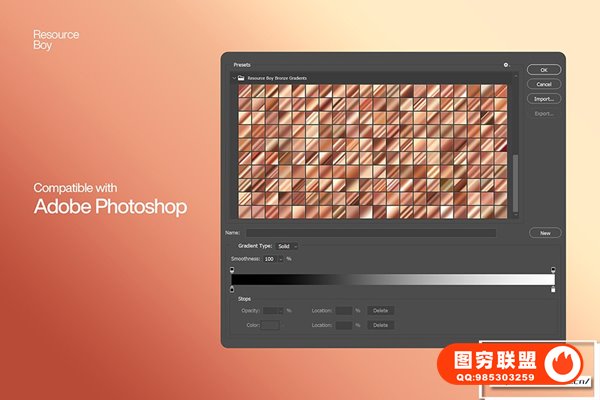 [PS渐变]200种粉色玫瑰金照片叠加PS渐变素材 200 Bronze Photoshop Gradients