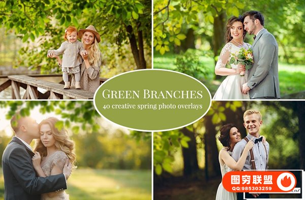 超级好用 Green Branches 照片叠加适用于任何允许使用图层的编辑软件(Photoshop CS 和 CC、Photoshop Elements、Zoner、Gimp 等)