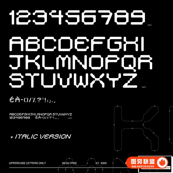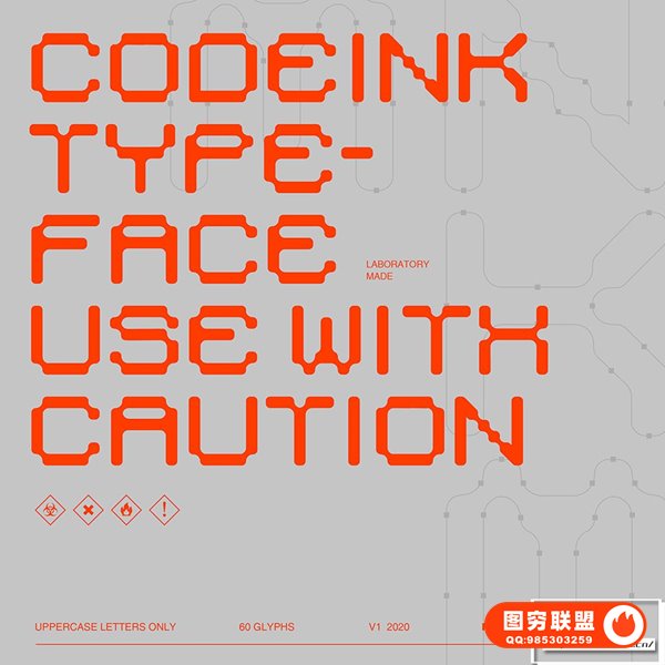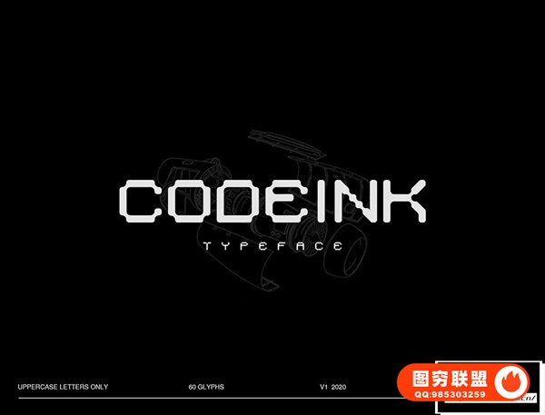 字体Heroink – Codeink Font 有60个字符(正/斜),全部为大写。