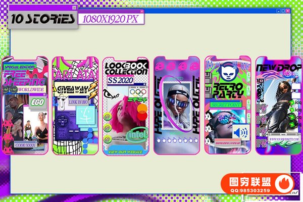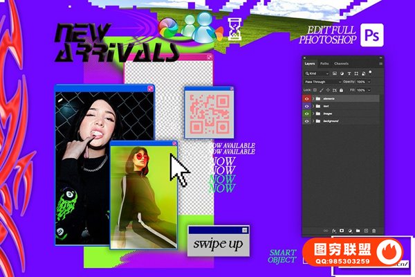 图穷联 » [PSD模板]街头嘻哈非主流赛博朋克复古酸性艺术INS新媒体宣传排版海报设计PSD模