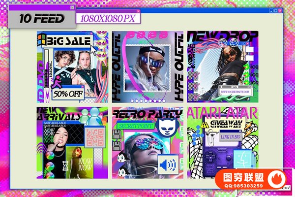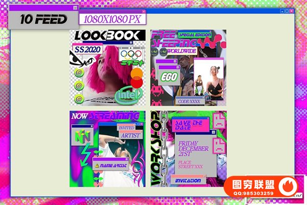 [PSD模板]街头嘻哈非主流赛博朋克复古酸性艺术INS新媒体宣传排版海报设计PSD模板 Retro templates instagram