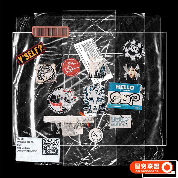 [PS样机]23款透明塑料褶皱箔纸磨砂玻璃气泡效果叠加包装贴纸PS样机素材素材 23 Plastic bag Mockups PSD + 19 bonus sticker VOL. 2