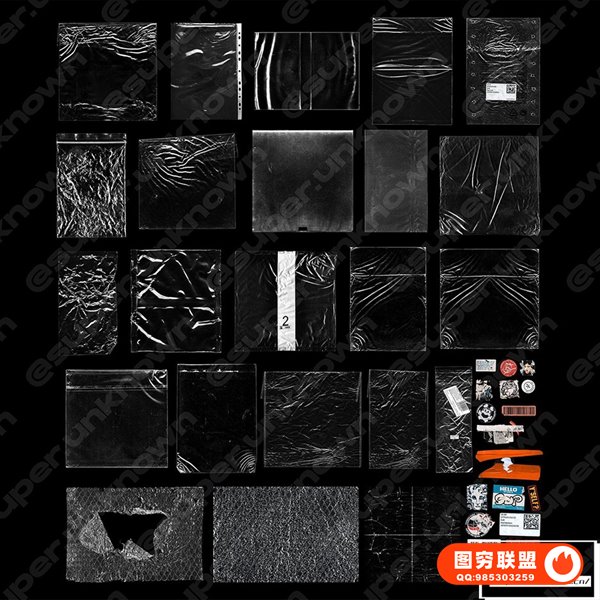 图穷联 » [PS样机]23款透明塑料褶皱箔纸磨砂玻璃气泡效果叠加包装贴纸PS样机素材素材 23
