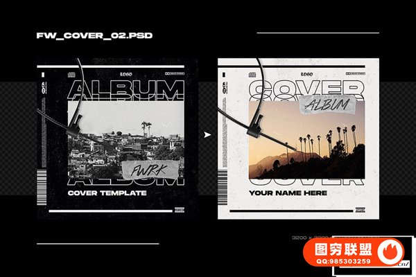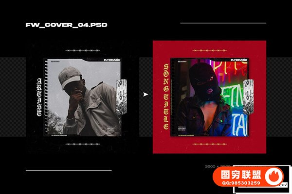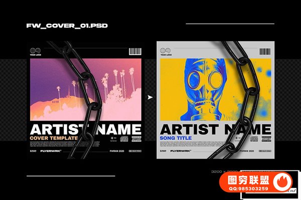 图穷联 » [PSD模板]5款潮流嘻哈酸性摇滚音乐CD唱片专辑封面创意设计PSD模板 Flyer
