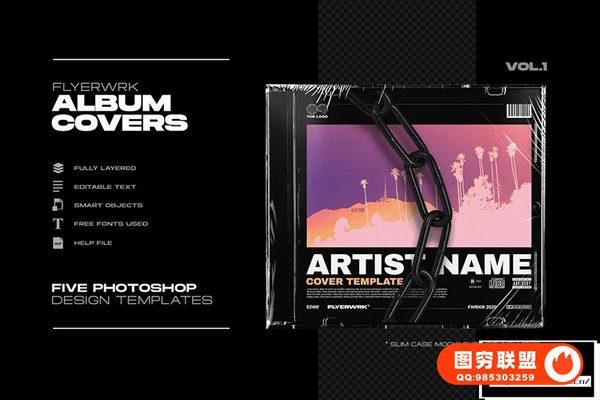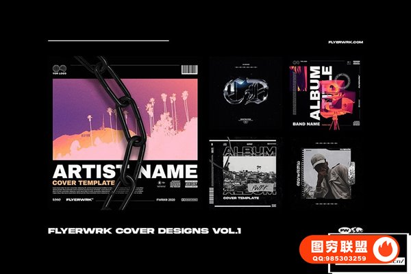 [PSD模板]5款潮流嘻哈酸性摇滚音乐CD唱片专辑封面创意设计PSD模板 Flyerwrk – Cover Design Templates Vol.1