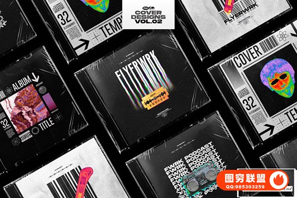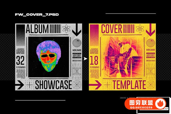 图穷联 » [PSD模板]5款潮流嘻哈酸性摇滚音乐CD唱片专辑封面创意设计PSD模板 Flyer