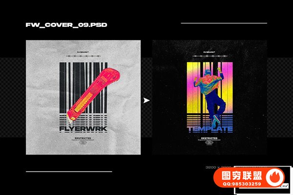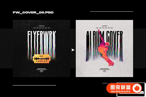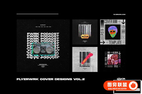 [PSD模板]5款潮流嘻哈酸性摇滚音乐CD唱片专辑封面创意设计PSD模板 Flyerwrk – Cover Design Templates Vol.2