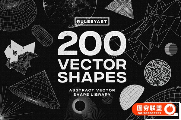 [矢量素材]200款创意抽象点线面几何图形扭曲3D空间艺术矢量图形设计素材 RuleByArt – 200 Vector Shapes