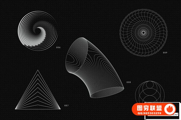 图穷联 » [矢量素材]200款创意抽象点线面几何图形扭曲3D空间艺术矢量图形设计素材 Rule