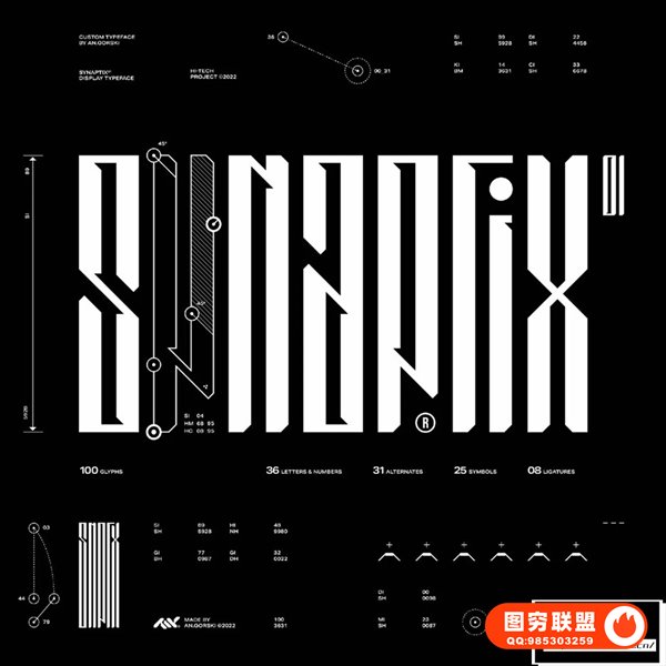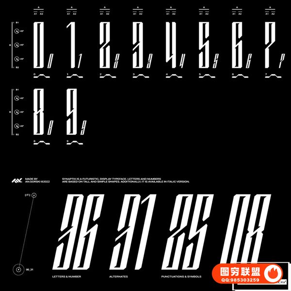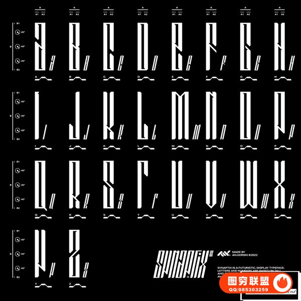 [字体]现代时尚简约抽象细长设计字母数字英文艺术装饰非衬线字体 Studio Innate – Synaptix
