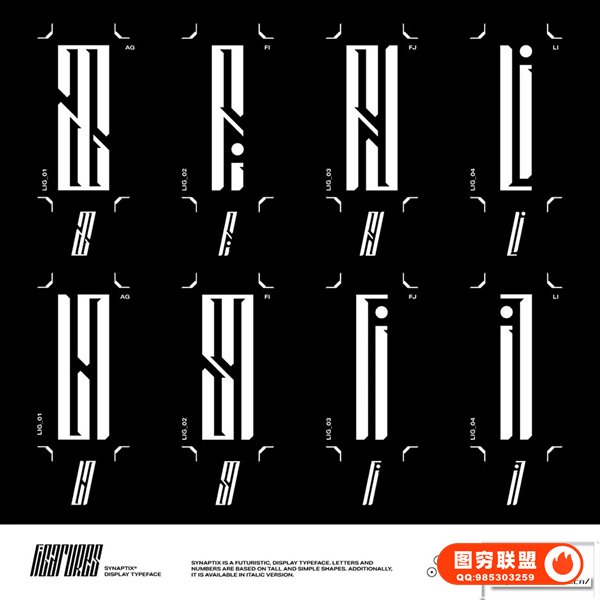 隆重推出 Synaptix!一种创新且极具启发性的字体,可为您的设计项目带来全新的创意水平。Synaptix 采用简约的字母和数字形式,强调高大细长的形状,让您的视觉效果具有超现代感,一定会吸引任何观众的眼球。斜体版本非常适合那些希望为自己的工作带来真正的自信和权威感的人,它增加了额外复杂的触感,让您可以通过其媒介传达表现主义和活力。充分利用这种令人惊叹的显示字体,让任何视觉项目在今天脱颖而出;有 Synaptix 在您身边,您就一定会成功!