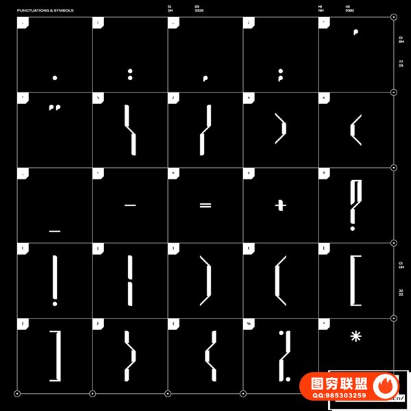 这套字体共拥有100 个字形,包括: